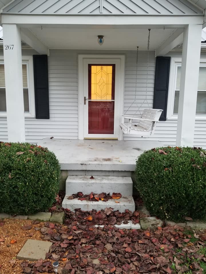 During spring and quarantine we had the house and porch area pressure washed and deep cleaned. I had all good intentions of painting our concrete at that point but time got away from me and then it got too hot out and to be totally honest I just don’t do hot so…. here we are in October and my porch is a mess again, so until next spring we will just mask it a little and dress the mess!